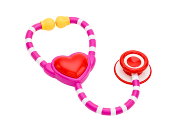 Red heart shape exercise ball with doctor physician's stethoscope isolated with clipping path on transparent background, hospital life insurance concept, world heart health day.