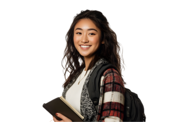 Smiling and attractive a young student girl holding a book isolated on white background. Suitable for marketing or business purposes. PNG file