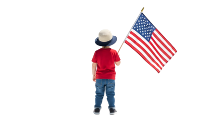Transparent smiling child holding small american flag