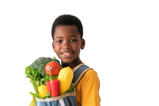 A happy cute african american boy wearing shirt isolated on transparent background.