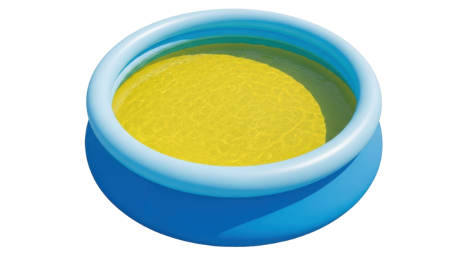 Isolated paddling pool on the grass, small children’s swimming pool with water, yellow color