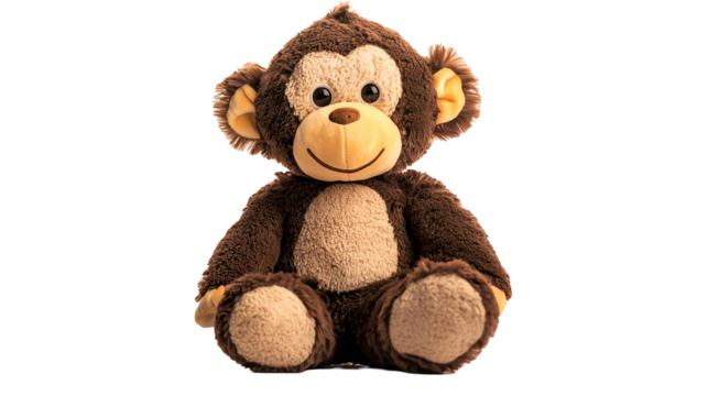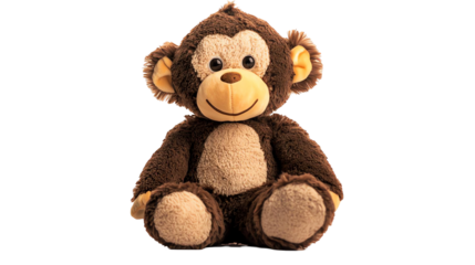 Cute plush monkey toy, soft and cuddly, isolated on white background.