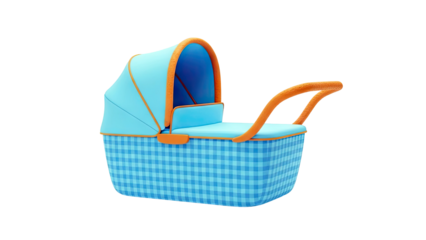 Blue Gingham Bassinet with Orange Trim