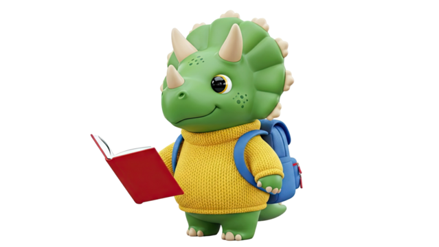 Cute Triceratops Dinosaur Reading Book with Backpack