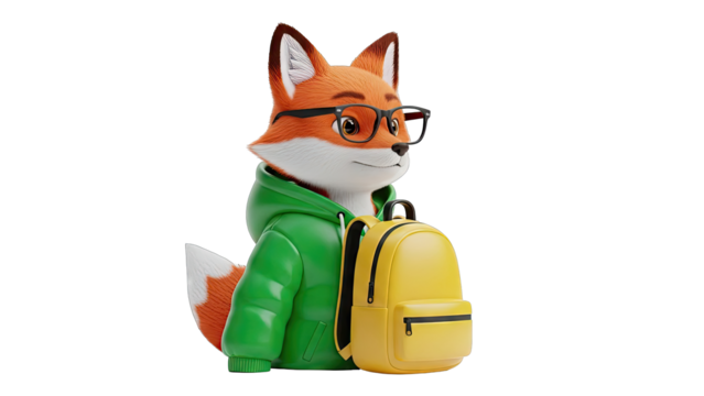 Cartoon Fox with Backpack and Glasses