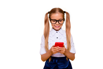 Break rest relax leisure addiction user schoolkid lifestyle fun joy hobby concept. Close up photo portrait of cute clever lovely dreamy adorable girl holding cell in hands isolated bright background
