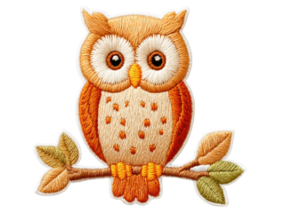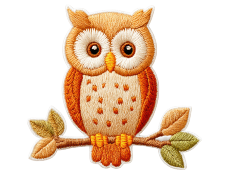 isolated transparent Background. Embroidered owl patch with vibrant colors and detailed stitching, perfect for crafts