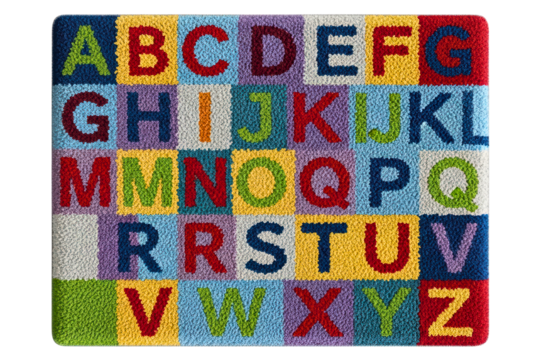 Colorful kids alphabet rug for learning and play on the floor on a transparent background
