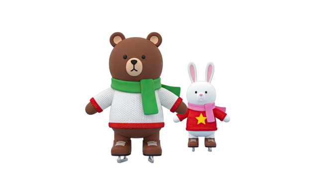 Cartoon Bear and Rabbit Ice Skating Characters
