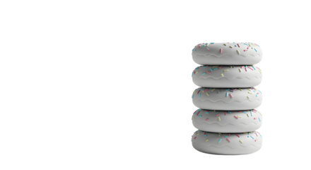 BABY TOYS - Stack of white sprinkled donuts isolated on white background, perfect for bakery advertisements or dessert menus