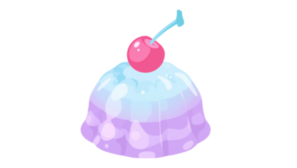 Vivid Digital Illustration of a Stylized Pastel Gradient Jelly Dessert Crowned with a Bright Red Cherry, a Refreshing and Whimsical Sweet Treat Graphic