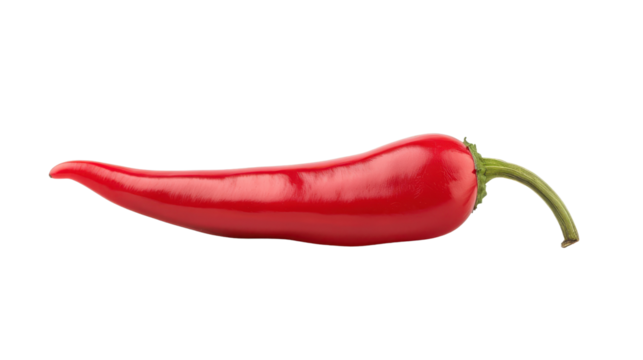 A red chili pepper, with its curved shape resembling the human body and tail, is placed isolated on a transparent background in PNG format.