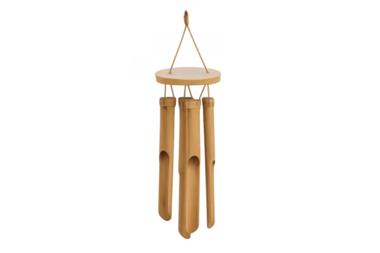 Coastal Wind Chime with Seashells, Driftwood & Beads isolated on white Background and Hanging on a Dry Tree Branch