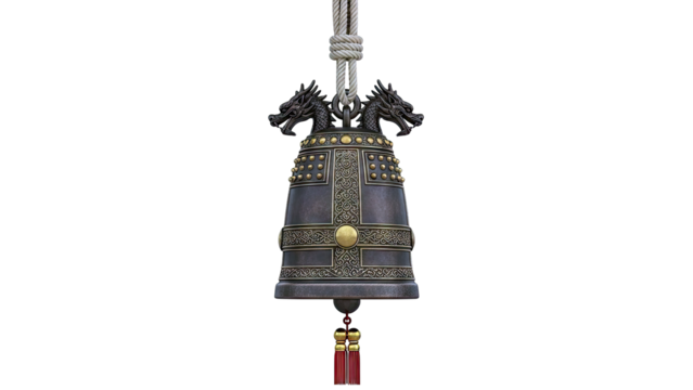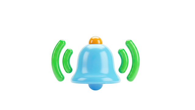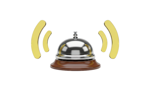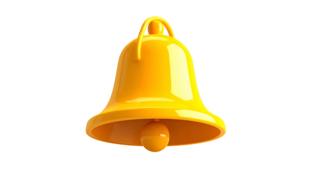 Golden bell chiming, producing celebratory sound against transparent backdrop, ideal for holiday and festive event imagery