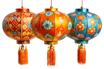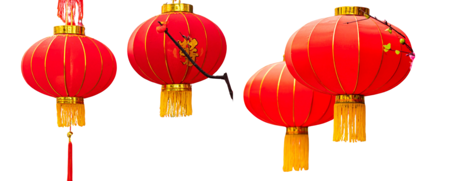 red chinese lanterns, chinese new year red lantern isolated on transparent background