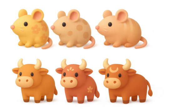 Cute rat and ox icon set for year of the ox and chinese zodiac designs