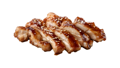 Savory teriyaki chicken on a transparent background. isolated background.