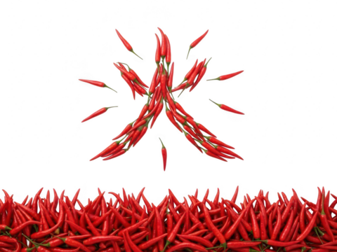 Chinese character for fire made from many small red chili peppers isolated on transparent background