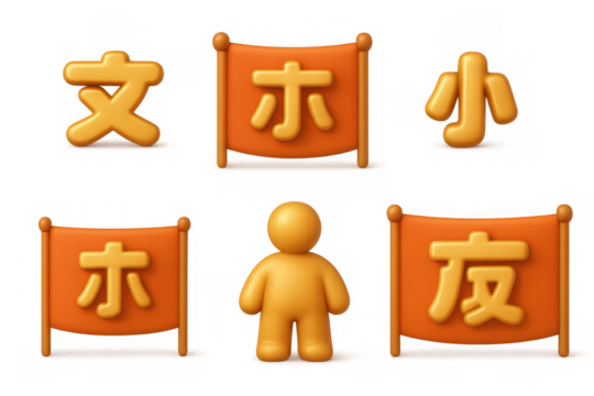 3D Chinese Characters in Gold and White on White Background