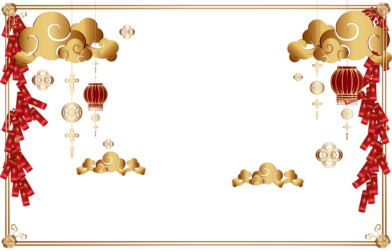 Chinese new year frame with lanterns clouds and tassels on transparent background