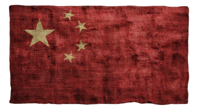 Chinese flag waving red fabric stars national symbol patriotism, isolated on a transparent background