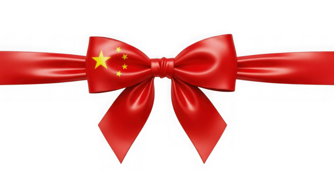China flag bow ribbon, patriotic symbol isolated on transparent background