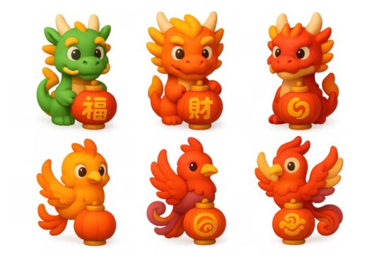 Cute dragon and phoenix lanterns for festive celebration and decor
