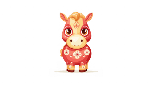 Adorable horse figure in red with floral designs, AI, PNG