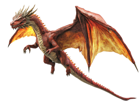 Mythical Majestic Red Dragon Design Isolated on Transparent Background
