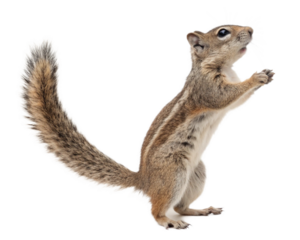 Red-tailed chipmunk in standing pose PNG on transparent background, ideal for wildlife illustrations, educational materials, and nature-themed graphic designs.