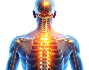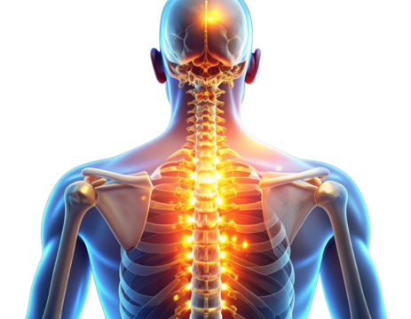 Human anatomy showing spine pain and lower back discomfort. medical illustration of spinal column inflammation or injury isolated on transparent background