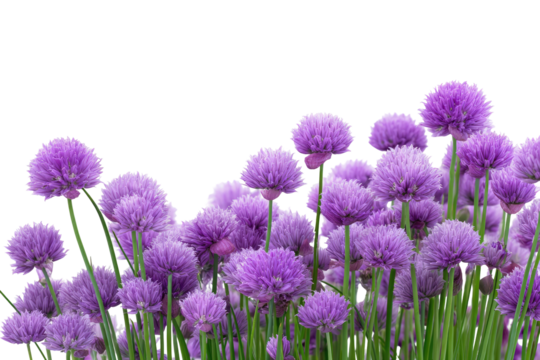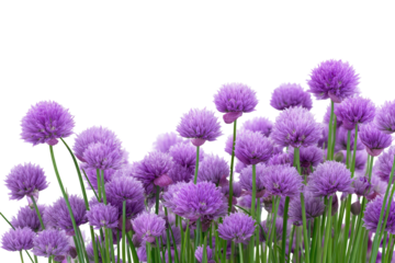 Purple chive blossoms against a transparent backdrop, a vibrant, delicate, and floral presentation