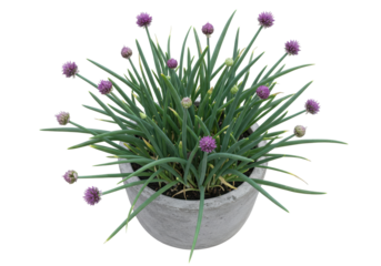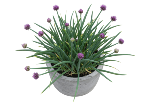Isolated Common Chives in a Pot with Blooming Flowers in Bloom Indoor, Fresh Herb, Herb Garden