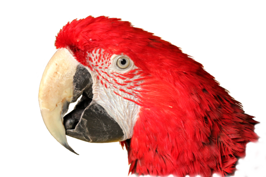 Portrait eines Dunkelroten Aras (Ara chloroptera), freigestellt