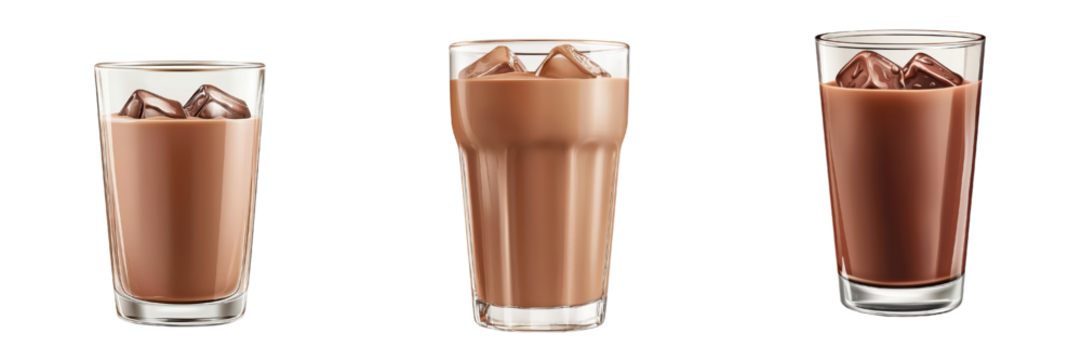 Iced cho te milk in three different glasses with ice cubes