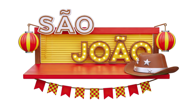 S?o Jo?o Marquee Sign with Cowboy Hat and Lanterns
