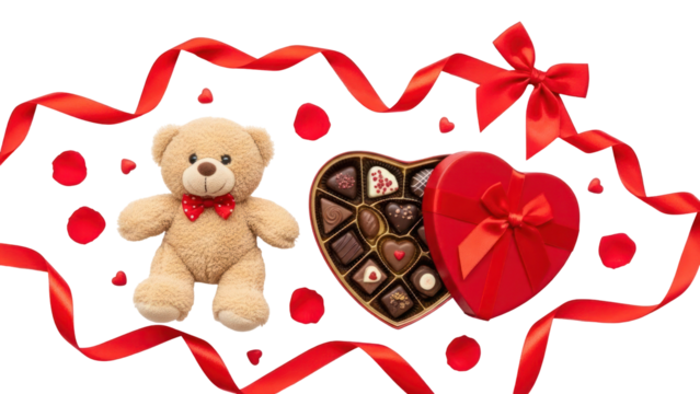 Valentine's day gift set with teddy bear and heart-shaped chocolate box