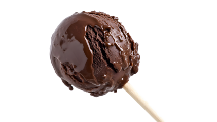 Chocolate cake pops with decorative swirls and sprinkles isolated on transparent background. Christmas chocolate lollipops isolated on white background.