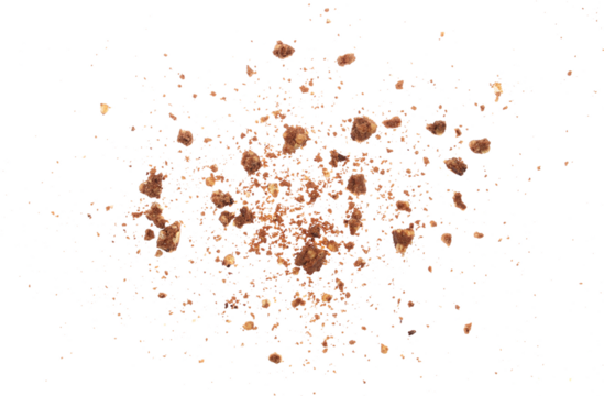 A slice of chocolate cake with nuts on a white plate isolated on transparent background