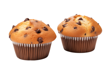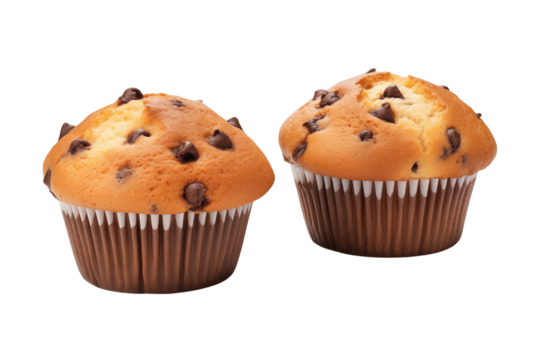 Chocolate chip breakfast muffins isolated on transparent or white background, png