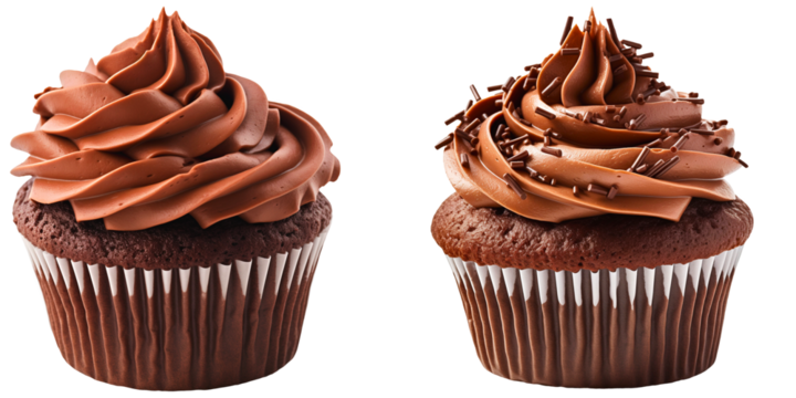 Delicious yellow cupcake topped with creamy chocolate frosting on a clean transparent background for dessert lovers and food enthusiasts