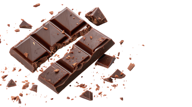 Indulgent dark chocolate pieces with crumbs on black background for dessert lovers and connoisseurs