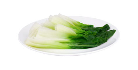 Fresh green bok choy leaves, also known as pak choi or chinese cabbage, isolated on a transparent background