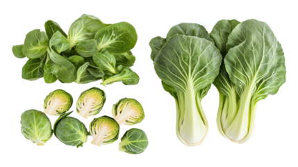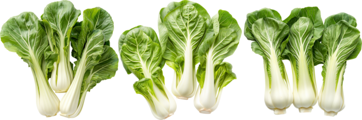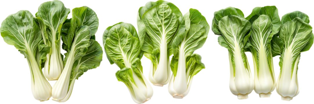 Fresh bok choy vegetable from different angles on transparent background