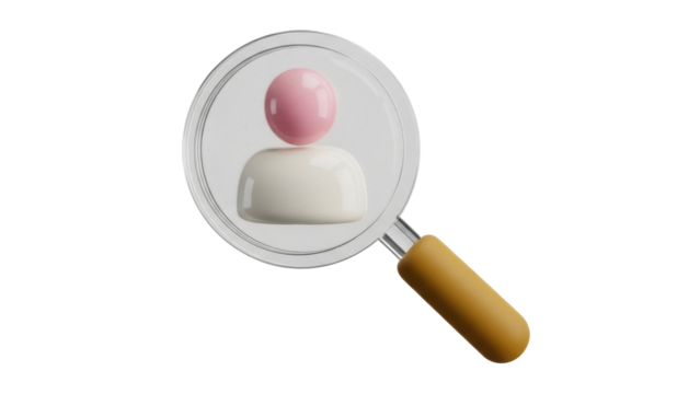 Isolated icon shows user profile under a magnifying glass search, concept of job search