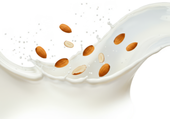 Delicious almonds splashing into creamy milk, a healthy refreshing treat for anyone