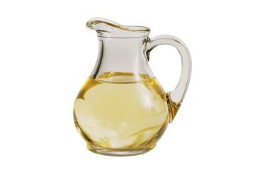 Glass Pitcher of Olive Oil on Light Background