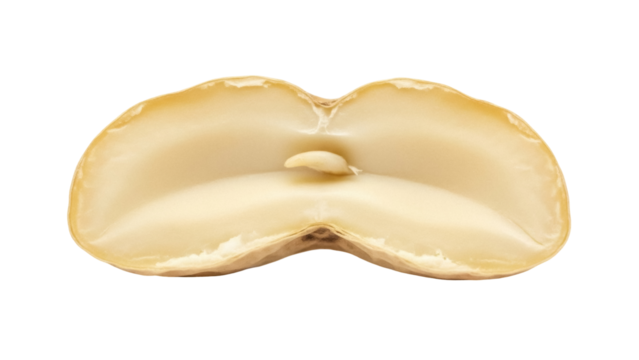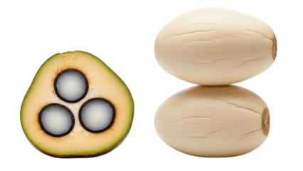 Closeup of cut peach palm fruit isolated on transparent background