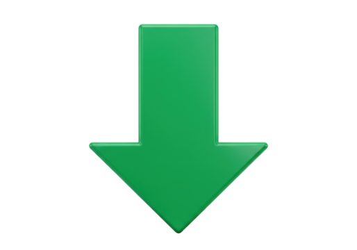 Isolated pointing down green arrow, direction indicator, modern navigation symbol or sign design