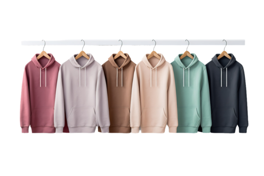 Rainbow of Comfort: A Vibrant Display of Colorful Sweatshirts on White or PNG Transparent Background.